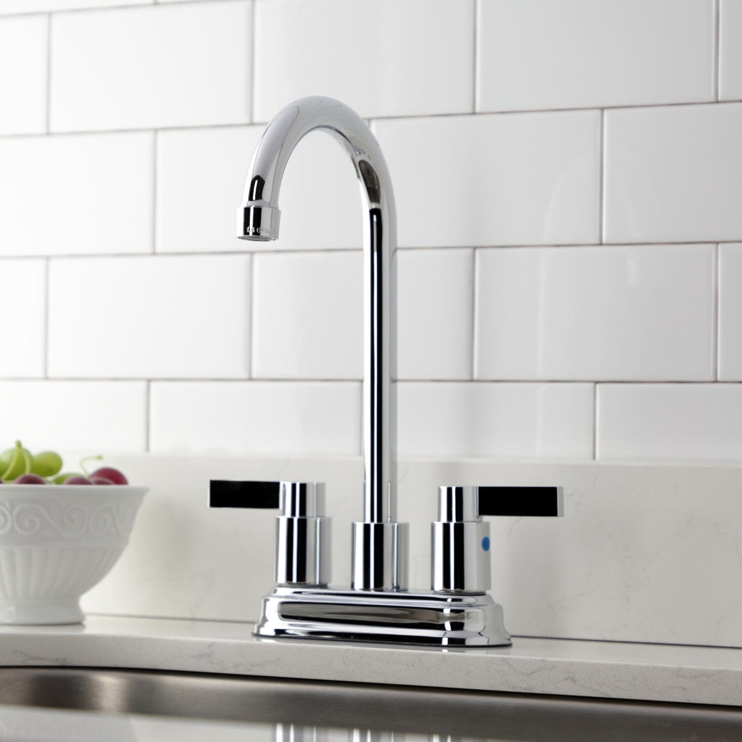 The dainty detailing of this faucet provides the delicacy of European antiquity along with top-of-the-line craftsmanship. Whether you are striving for a Victorian-inspired kitchen or a vibrant 1950s-themed space, the unique bridge design is a highly favored option amongst those doing period-style kitchens. Because of its added architectural elements and detailing, the oil rubbed bronze finish will pop against your surrounding kitchen decor. Allow the brass construction, side sprayer, and swivel abilities to provide a sturdy and reliant fixture, great for use with any sink.